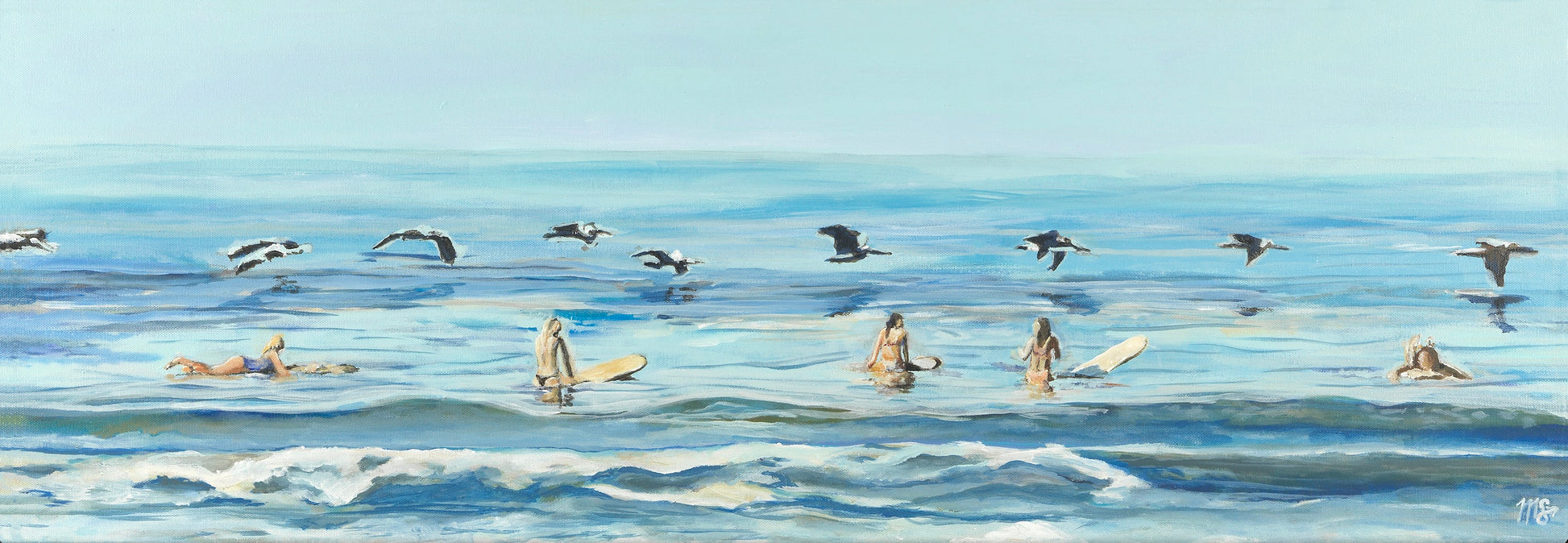 28"x12" Pelican Line Acrylic Painting - Print - Bright White Matte